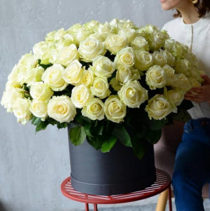 Шикарная коробка из 101 белой розы