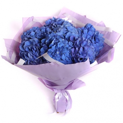 Потрясающий букет из синей гортензии в стильной упаковке. Букет по умолчанию представлен из 5 гортензий, но их количество можно изменить.