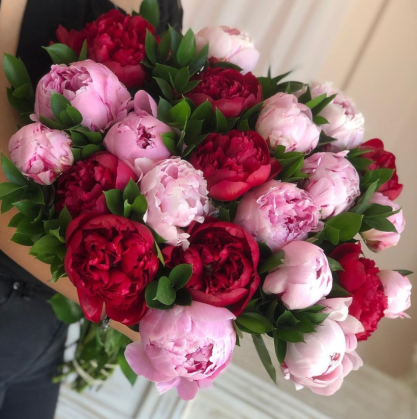 Букет из 21 розовых и красных пионов | Купить в Электростали