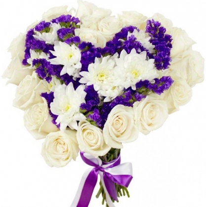 Букет сердцем из роз, хризантем и статицы | Купить в Электростали