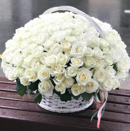 Потрясающая корзина из 101 белоснежной розы.