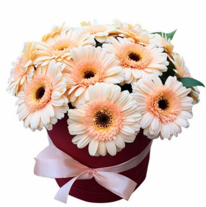 Коробка с персиковыми герберами